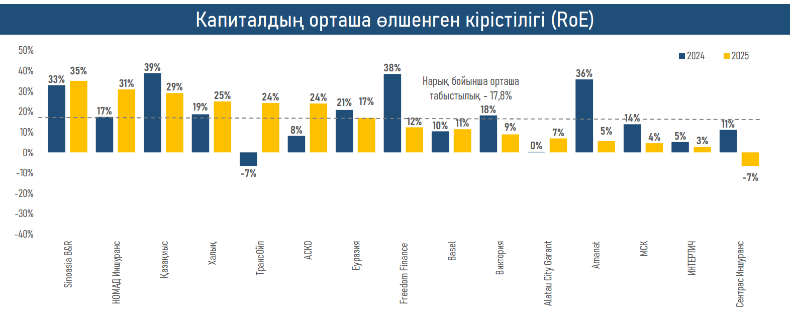 - Нәтижесінде сақтандыру нарығының рентабельдігі 2024 жылғы 20,3%-бен салыстырғанда 17,8%-ға дейін төмендеп, сектордағы маржаның қысқарғанын көрсетеді.