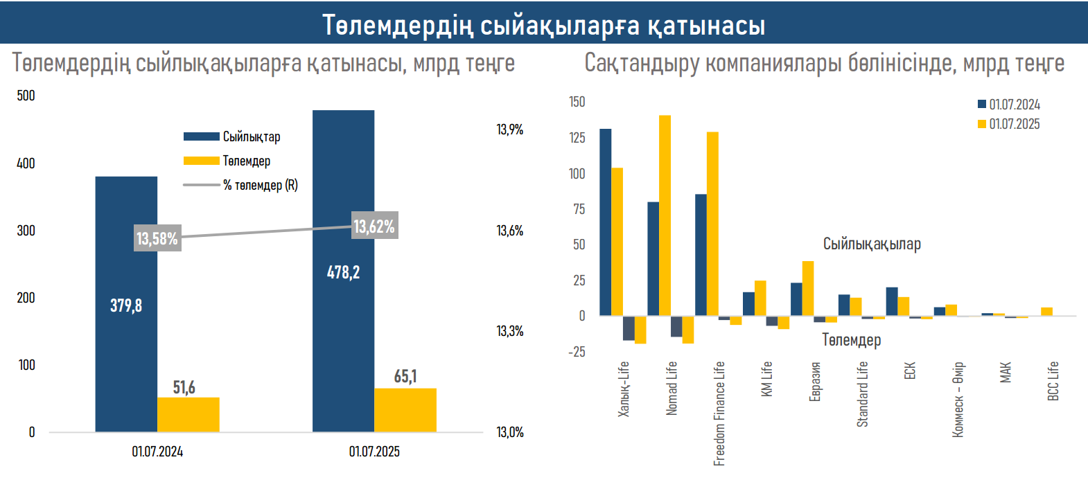 2025 жылғы қаңтар–маусымда өмірді сақтандыру секторының өсуі зейнетақы аннуитеті өмірді сақтандыру шарттарын белсенді түрде жасасудың жалғасуына байланысты болды.