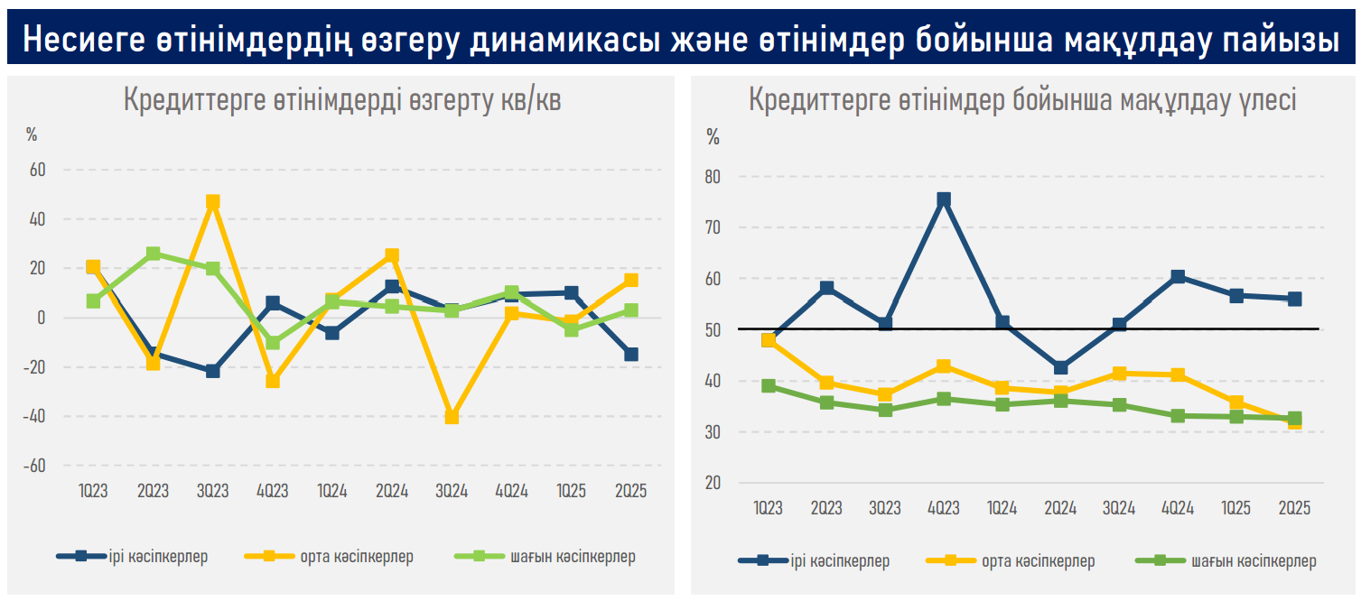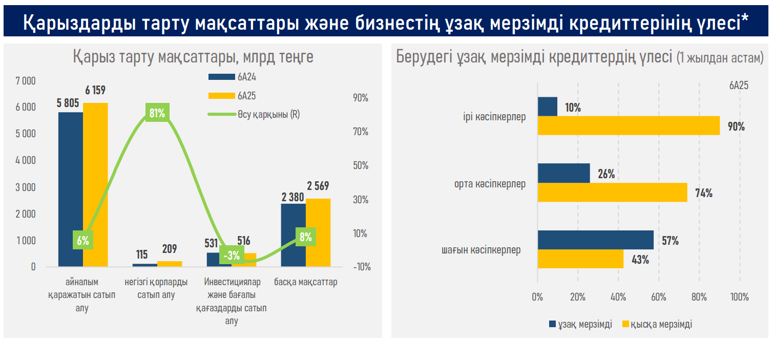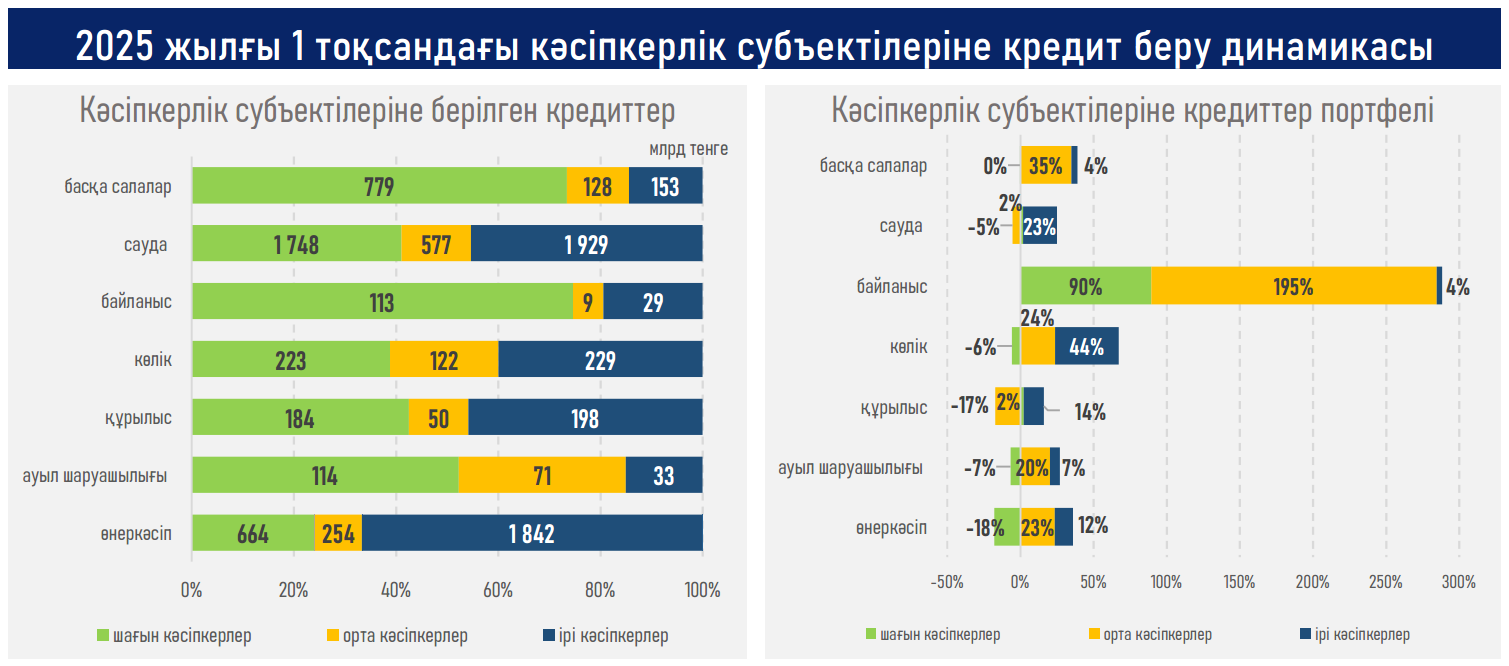 - 2025 жылдың үшінші тоқсанында ІБ тарапынан несиеге сұраныстың жоғары динамикасын сақтауға болады, ең алдымен ауқымды жобалар іске асырылатын құрылыста, өнеркәсіпте және көлікте жоғары іскерлік белсенділік пен рентабельділік сақталады.
