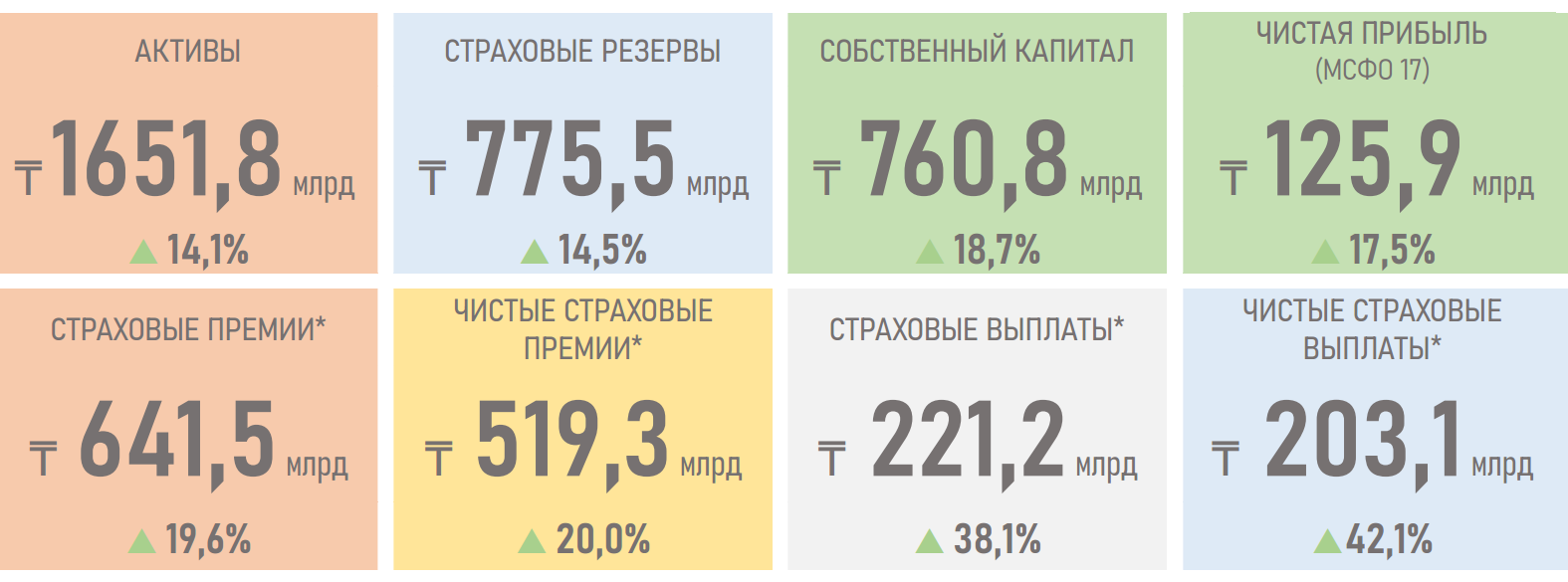 Спрос на страховые продукты в текущем году сохраняется высоким, что способствует двухзначному увеличению собранных премий во всех сегментах: в добровольном имущественном страховании (+16,5% или ₸8,7 млрд), в обязательном страховании (+18,7% или ₸18,4 млрд) и добровольном личном страховании (+40,9% или ₸24,8 млрд).