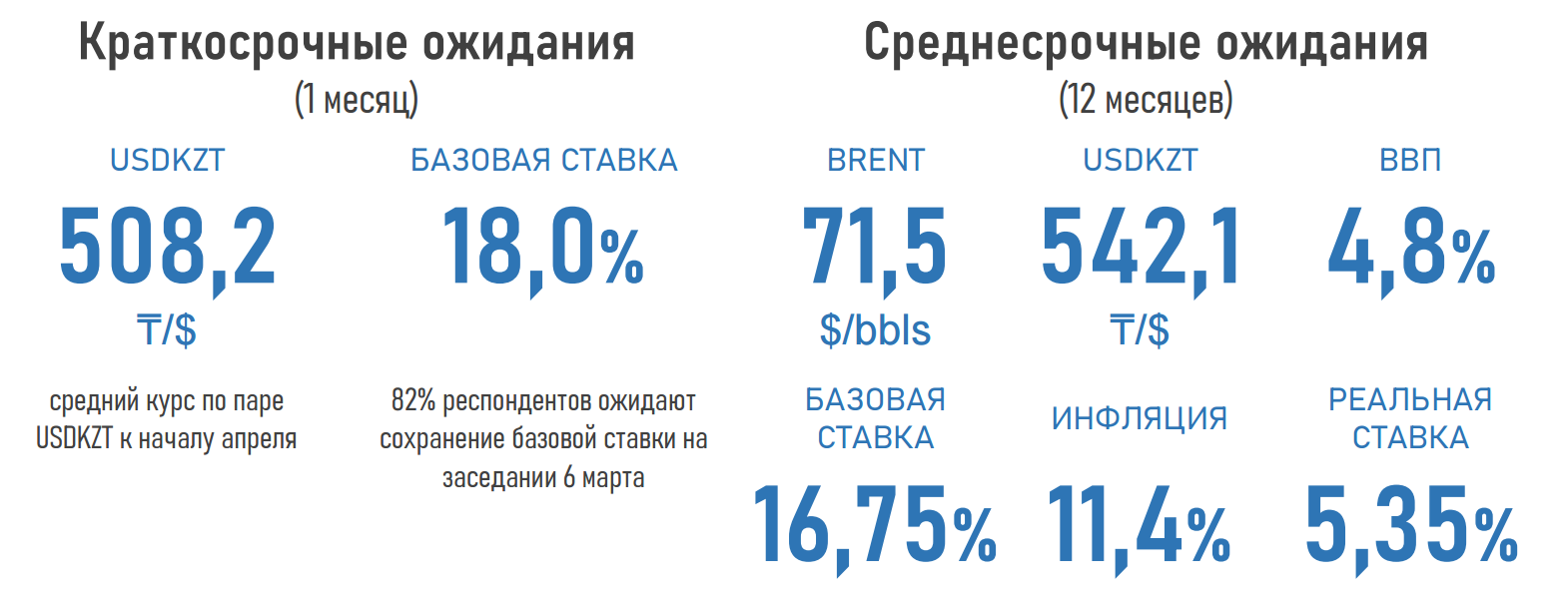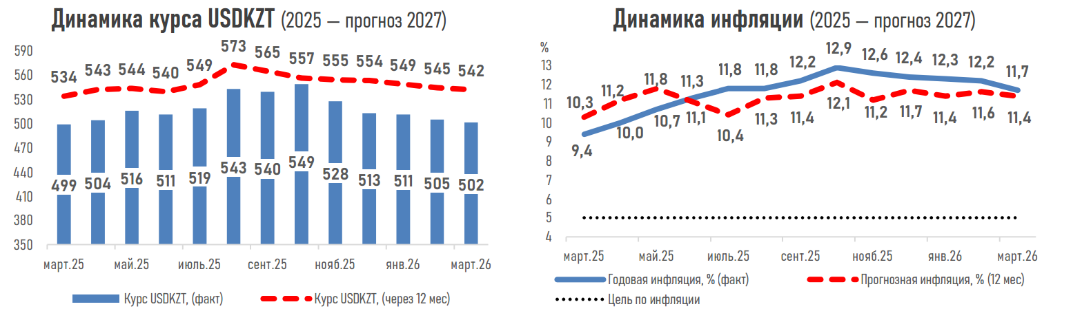 - При этом через год эксперты ожидают двухзначную инфляцию — на уровне 11,4%, что указывает на необходимость поддержания относительно жёсткой ДКП в среднесрочной перспективе.