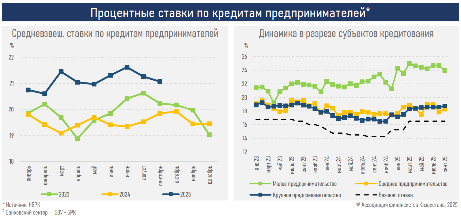 Драйверами роста кредитования за январь — сентябрь т.г. стали крупный и средний бизнес, что отражает их более высокую кредитоспособность, понятную и предсказуемую финансовую информацию, устойчивость денежных потоков и наличие качественного залогового обеспечения. Эти факторы позволяют банкам быстрее и в большем объёме одобрять их заявки, формировать более крупные лимиты и концентрировать выдачи в сегментах с более низким уровнем риска, что поддерживало рост кредитования даже вопреки ужесточению денежно-кредитных условий.