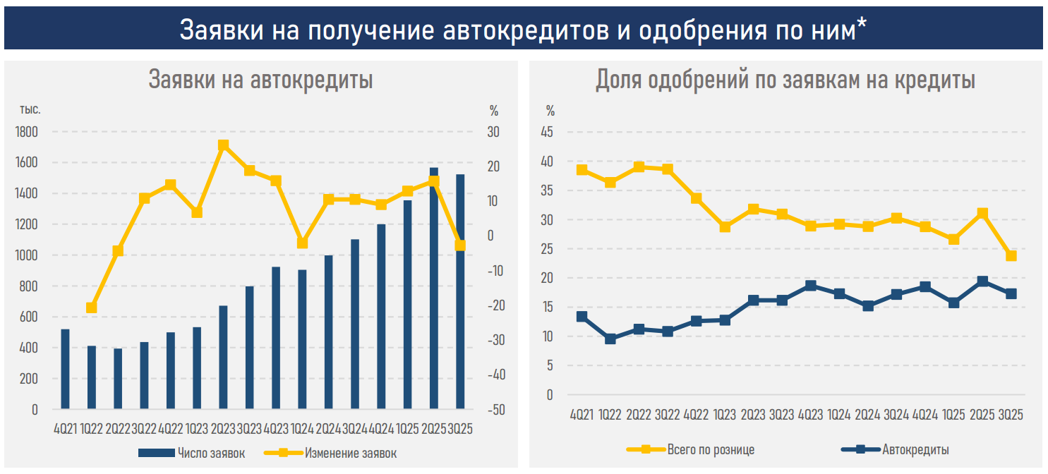 - В 2025 году автокредитование оставалось одним из ключевых драйверов розничного кредитования, демонстрируя двузначный рост по основным метрикам.