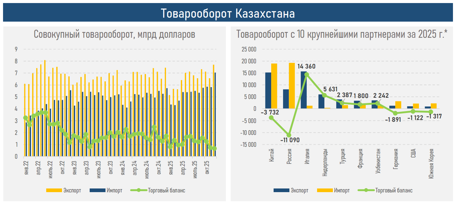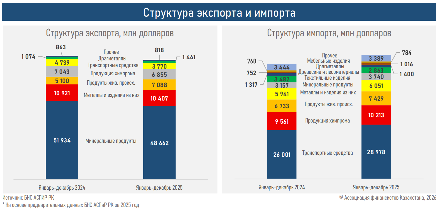 Аналитический центр АФК представляет вашему вниманию обзор товарооборота Казахстана за 2025 год.