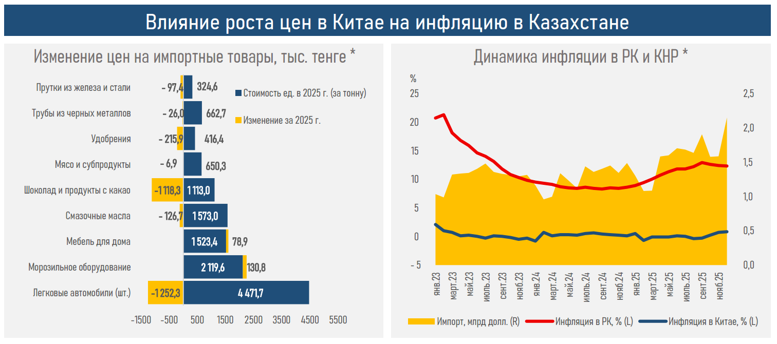 • Это оказывает сдерживающее влияние на внутреннюю инфляцию в Казахстане, частично компенсируя проинфляционные факторы со стороны тарифов, внутреннего спроса и бюджетных расходов.