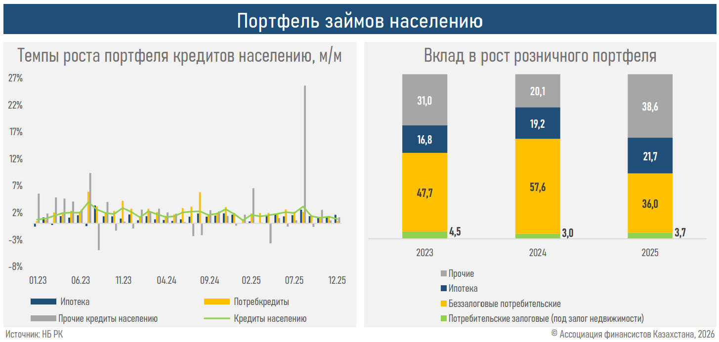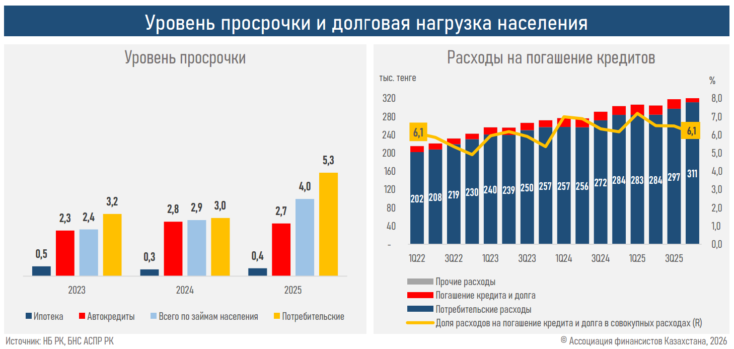 В начале 2026 года рынок уже демонстрирует признаки коррекции (снижение объемов выдачи на 5,9% за янв.-фев.). С учётом сохраняющихся жестких денежно-кредитных условий и действия ранее принятых регуляторных мер ожидается дальнейшее замедление розничного кредитования, что будет сопровождаться более сдержанной динамикой расходов домохозяйств и снижением вклада кредитного импульса в экономическую динамику.