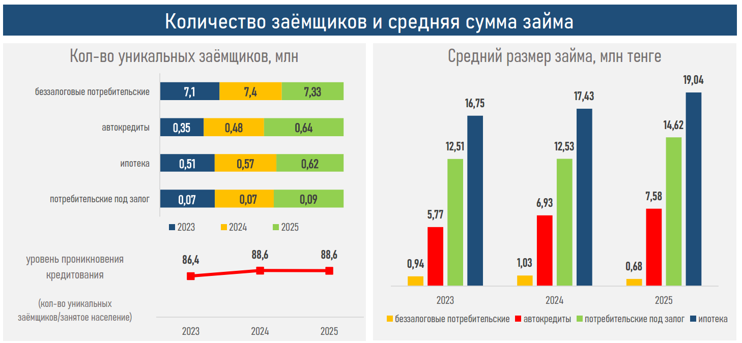 - Общее количество кредитных заявок от казахстанцев сократилось на 13,7% после роста на 13,8% годом ранее, что указывает на разворот динамики спроса.